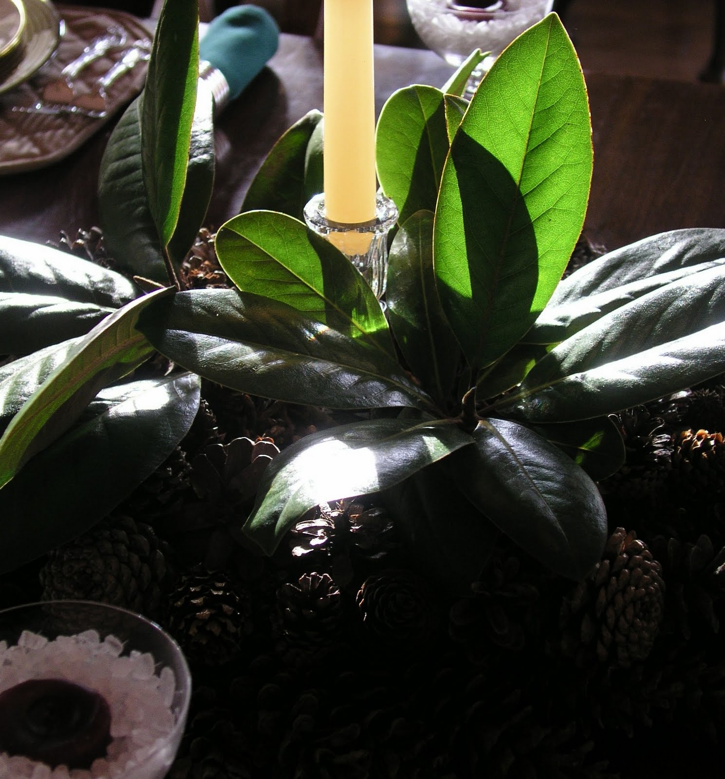 I thought of using elegant silver candelebra, but went with two very different pairs of thrifted candleholders instead. Mixing patterns, styles, and colors in unexpected ways can be challenging, but the results (I think) can be vastly more interesting.
