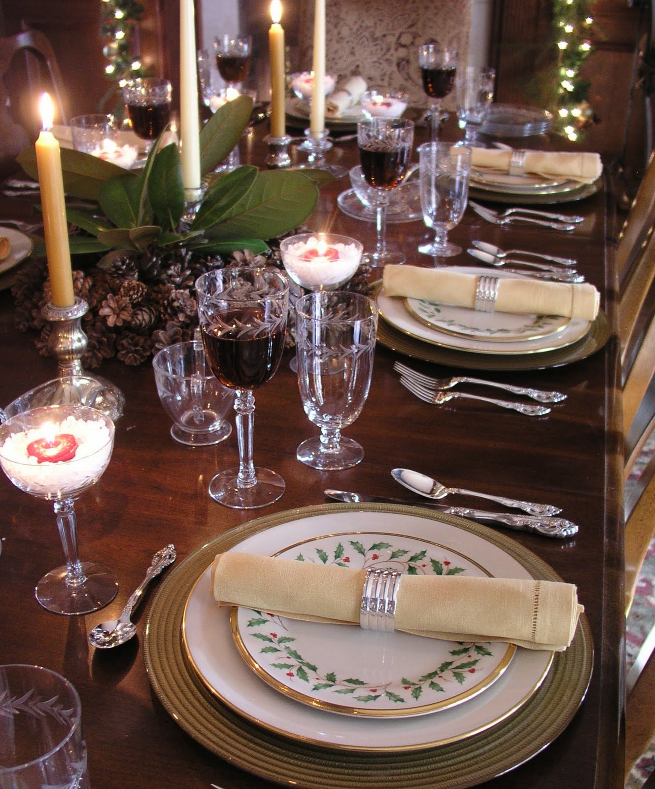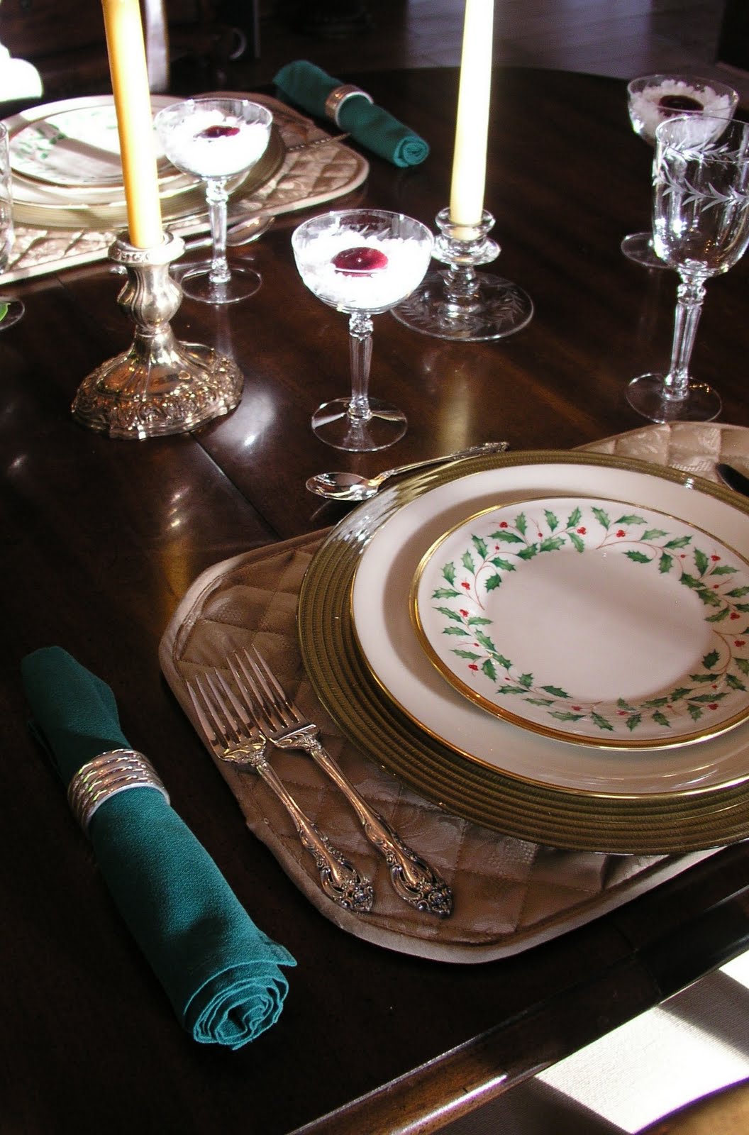 Estate sales provided the napkins and napkin rings. I found 4 each of the napkin rings (new in their boxes) at two separate sales.